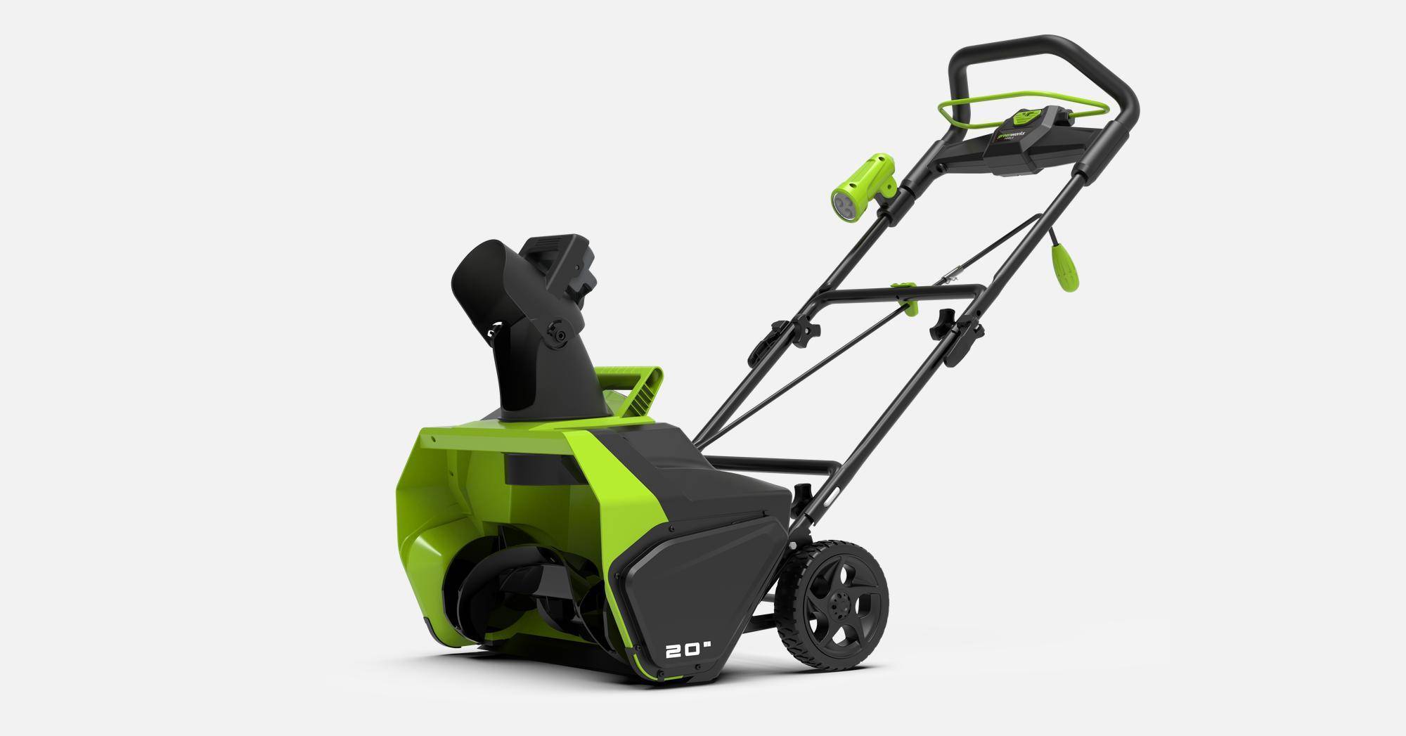 Для этого снегоуборщика не понадобится постоянное подключение к сети, так как он оснащен аккумулятором, что удобно для уборки больших открытых территорий. Автономная работа – от 30 до 45 минут. Выброс снега на расстояние до 6 метров. Цена – от 15 000 рублей.