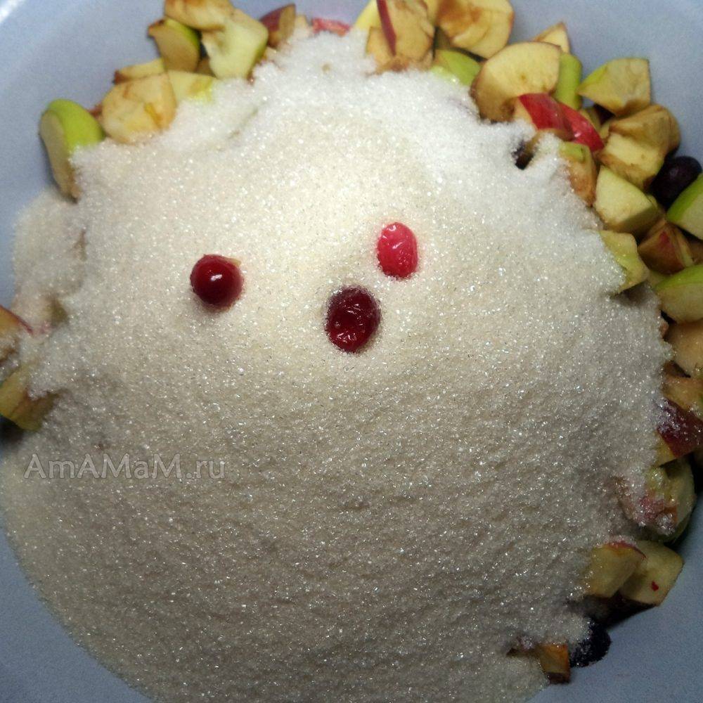 Если у вас очень сочные яблоки и ягоды, тогда вода и вовсе может не понадобиться, сварить варенье можно будет и так, просто смешав фрукты с брусникой и сахарным песком.