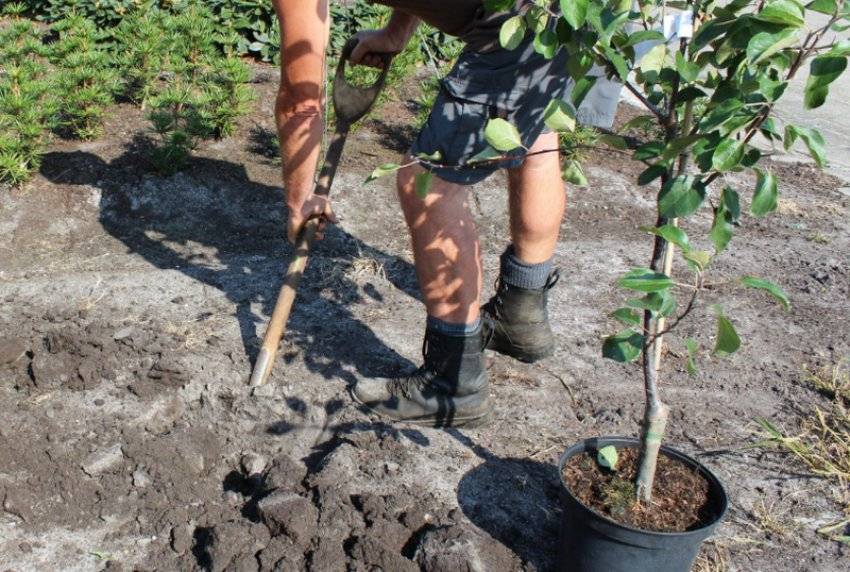 Посадка саженца начинается с предварительной подготовки участка и организации посадочной ямы. Обычно к этому процессу переходят за две недели до выполнения посадочных мероприятий, предварительно убрав весь растительный мусор и хорошо перекопав сам субстрат.