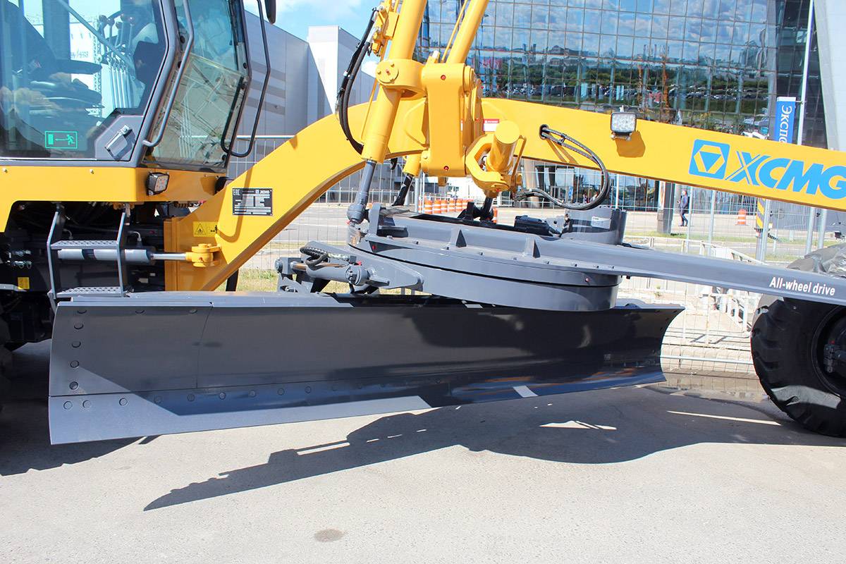 Грейдер XCMG имеет в своей конструкции автоматический блокируемый дифференциал. Машина может работать под уклоном 20º. Давление рабочей системы — 18 МПа. Вес — 16500 кг. Тяговая сила — 87 кН. Двигатель мощностью 160 кВт.