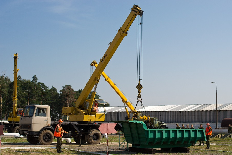 Краны на шасси МАЗ-5337 компактны, высота подъема груза — до 25м (с дополнительным гуськом).