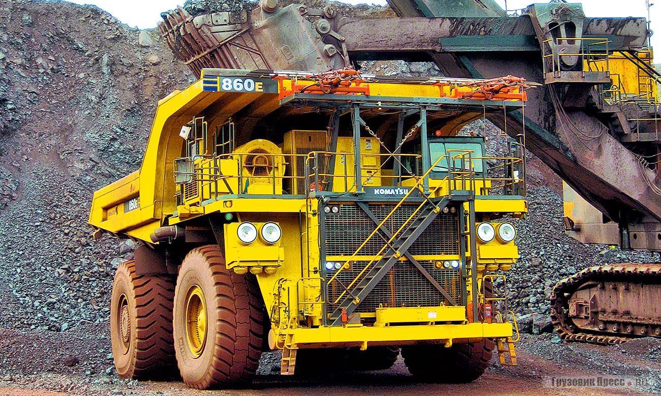 Кроме того, карьерные самосвалы выпускает японская компания Komatsu. Модель 980Е-4 рассчитана на загрузку кузова горной породой весом до 369,4 т (вместимость 250 м³). В основе машины — жесткая лонжеронная рама. Мощность дизеля с наддувом составляет 3549 л. с.