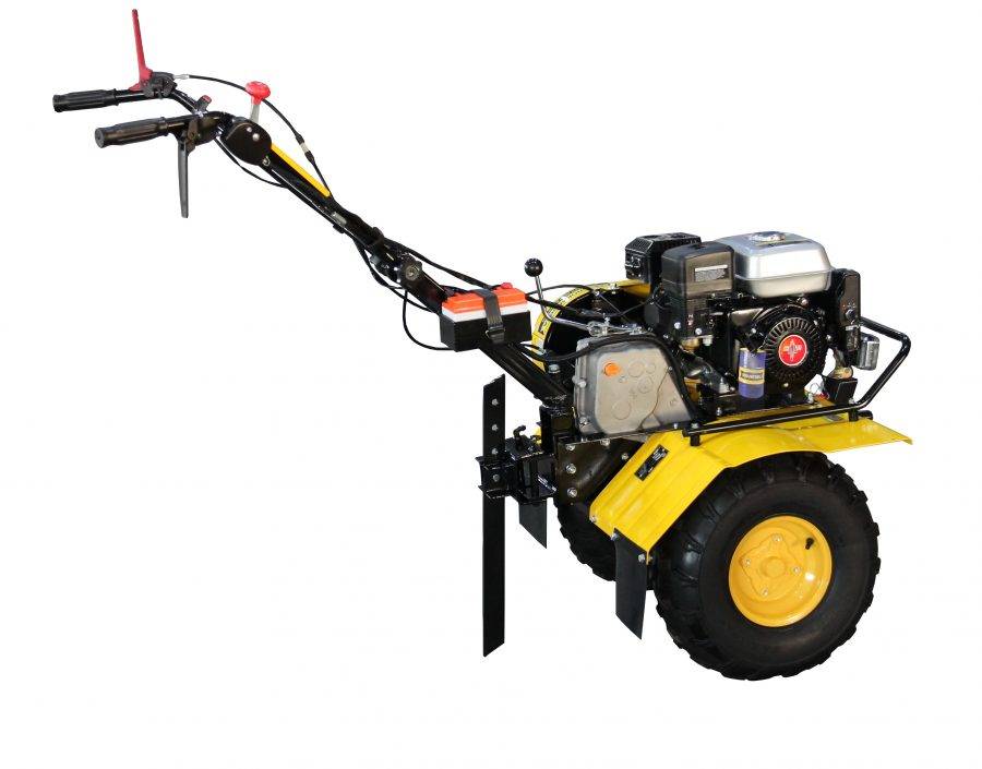 Модель от французских производителей, оборудованная надежным бензиновым силовым агрегатом из Японии. Техника относится к категории легких, его масса 72 кг. Двигатель 4-тактный, с 1 цилиндром, имеется воздушная защита от перегрева. Мощность 6 л. с., объем 169 см3. Для запуска мотора используется ручной стартер, есть возможность перехода на электрический запуск.
