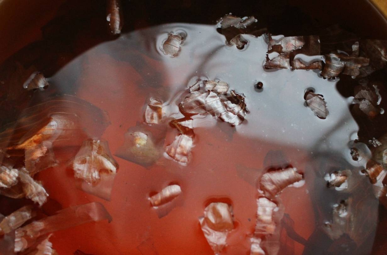 Нужно всю имеющуюся шелуху сварить и развести, чтобы цвет раствора напоминал чай. Это рецепт для внекорневой подкормки. Он помогает от грибковых болезней.