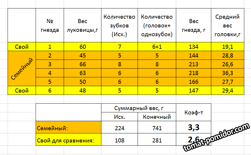 Коэффициент увеличения веса чеснока у семейного чеснока – 3,3