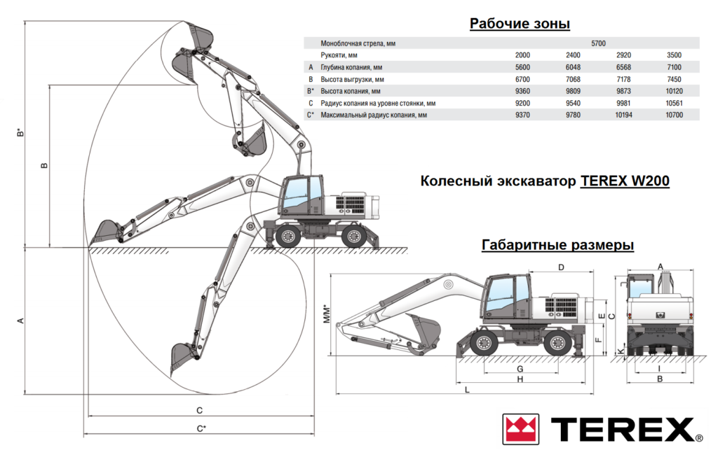 | M* Общая высота по стреле при передвижении своим ходом (подъем 200 мм) | 3370 | 3330 | 3670 | 4180 |