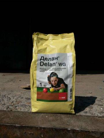 Важно! Вероятность формирования устойчивости болезнетворных микроорганизмов к действующему веществу Делана после его применения минимальная. Это объясняется тем, что фунгицид угнетает несколько ферментов грибов