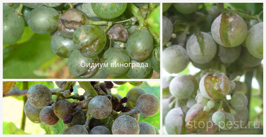 Оидиум винограда, внешние признаки поражения ягод