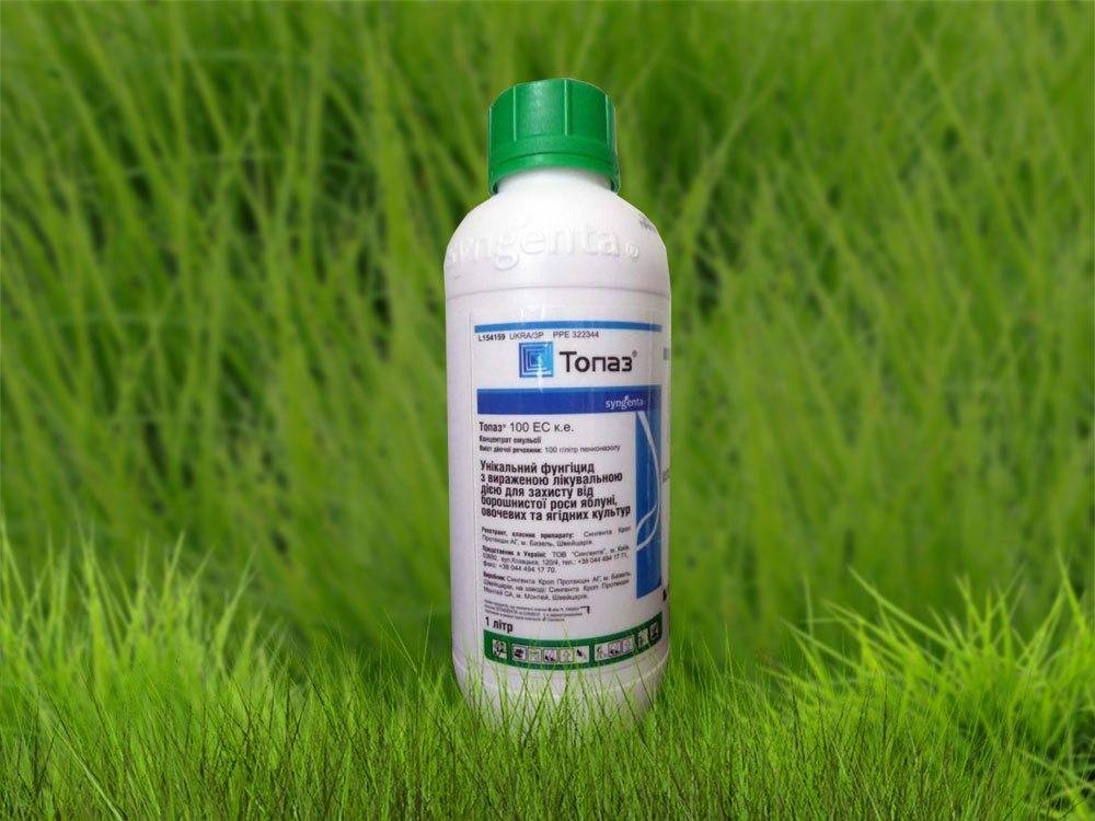 Топаз — фунгицид системного действия, в состав которого входит пенконазол. Предназначен для защиты ягодных, косточковых, семечковых, овощных и декоративных культур от ржавчины, мучнистой росы и других грибковых заболеваний. Применяется для обработки виноградников. Является умеренно опасным веществом. Между обработками обязательно нужно делать недельный интервал.