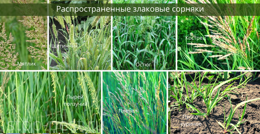 Типичные представители – пырей ползучий, куриное просо, метлица обыкновенная, овсюг (пустой овёс), мятлик, щетинник, кострец, плевел.
