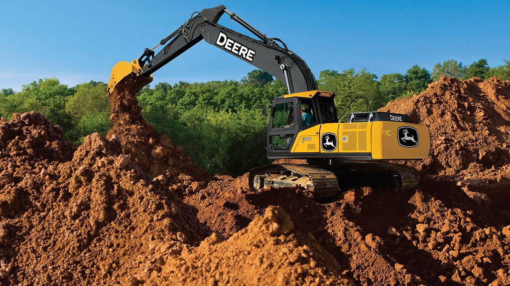 Кабина экскаватора John Deere имеет увеличенный внутренний объём, комфортное сиденье, а также автоматическую систему климат-контроля и мощную печку внутри. При работе климатической установки в кабине немного увеличивается давление, что позволяет предотвратить попадание пыли внутрь. Воздушные фильтры кабины доступны для замены с уровня земли, что упрощает обслуживание.Многие машинисты отмечают, что в кабине много места не только в рабочей зоне, но и за сиденьем оператора. Также в стандартную комплектацию входит увеличенное число рабочих фар: по две в верхней и нижней части кабины, две на стреле и ещё одна — на ящике для инструмента.