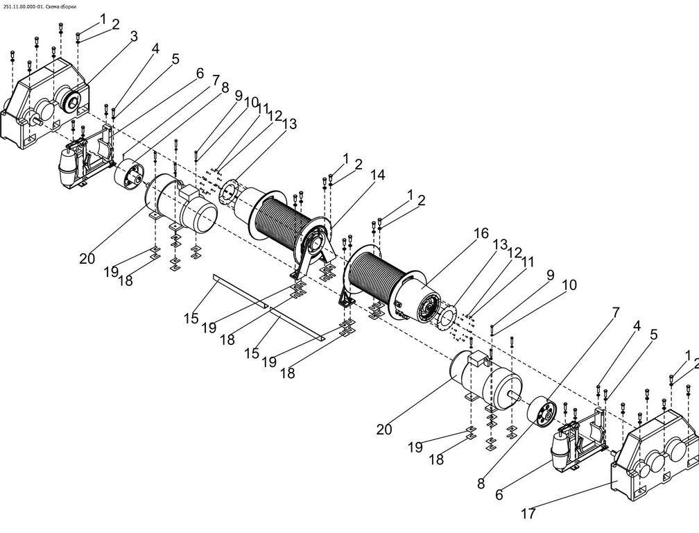 В кране ДЭК-251 используется барабанная лебёдка 251.11.00.000-01 с электроприводом. Лебедка подъема груза состоит более чем из двадцати деталей (сборочных узлов и единичных деталей), всего в сумме весящих около 2,7 тонн.