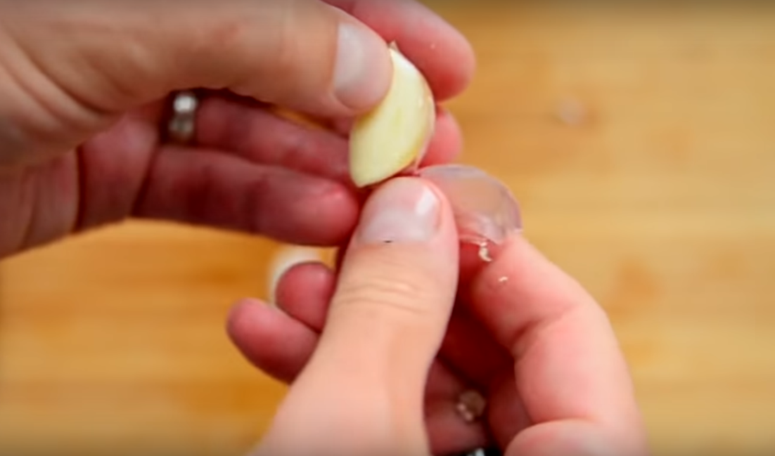 Для остроты, конечно же, добавим чеснок. Его мы также почистим и измельчим в блендере.