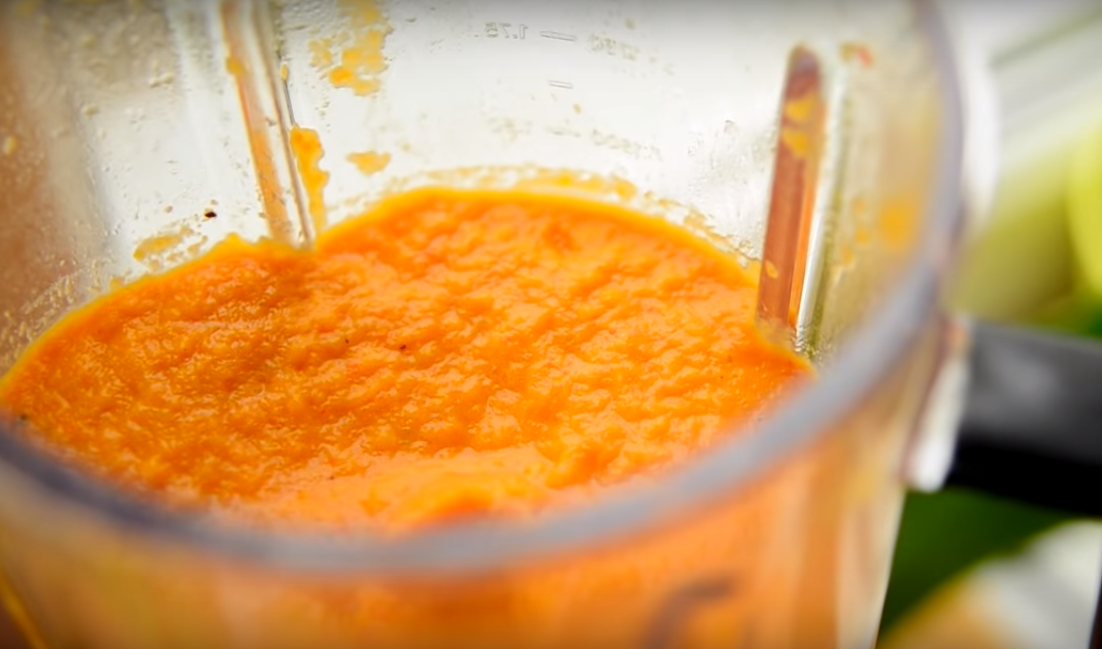 6. Готовность проверить легко, как только все оставляющие станут мягкими и словно будут расползаться по стенкам посуды, это будет свидетельствовать о том, что можно переходить к следующему этапу. То есть берите в руки блендер и молите в однородную массу.