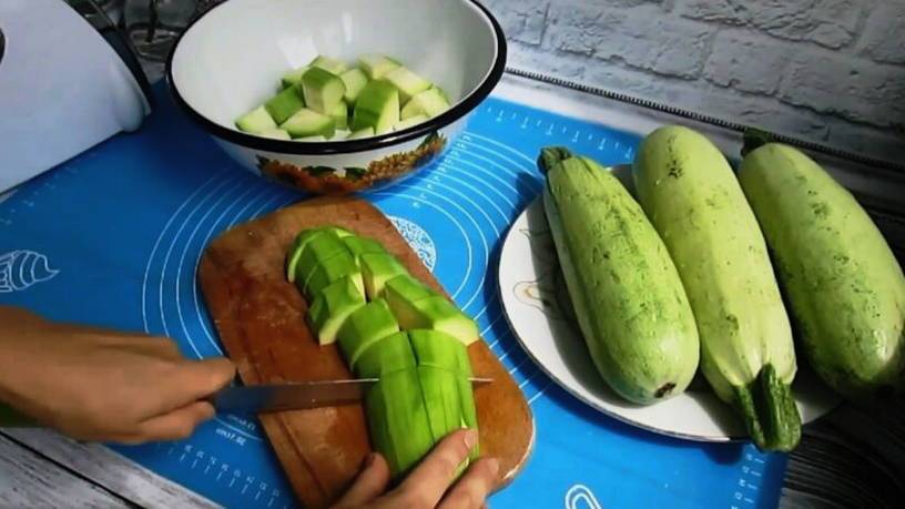 Рекомендуется готовить закуску из молодых кабачков с молочными семенами. Кожуру лучше очистить, нарезать плоды на кубики и пропустить через мясорубку.