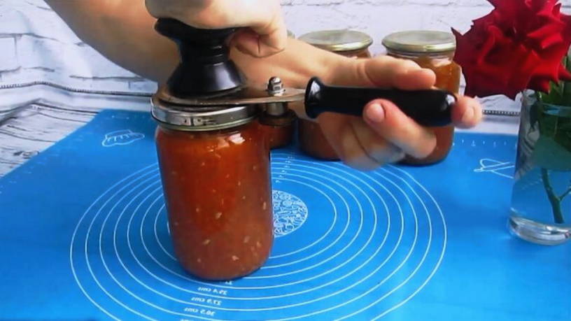 Перемешаем ингредиенты и продолжим тушить их на протяжении часа. Пока кабачковая икра на зиму с майонезом будет томиться на медленном огне, простерилизуем стеклянные банки и металлические крышки для консервации. Переложим готовую кабачковую икру в банки и закатаем их с помощью машинки.
