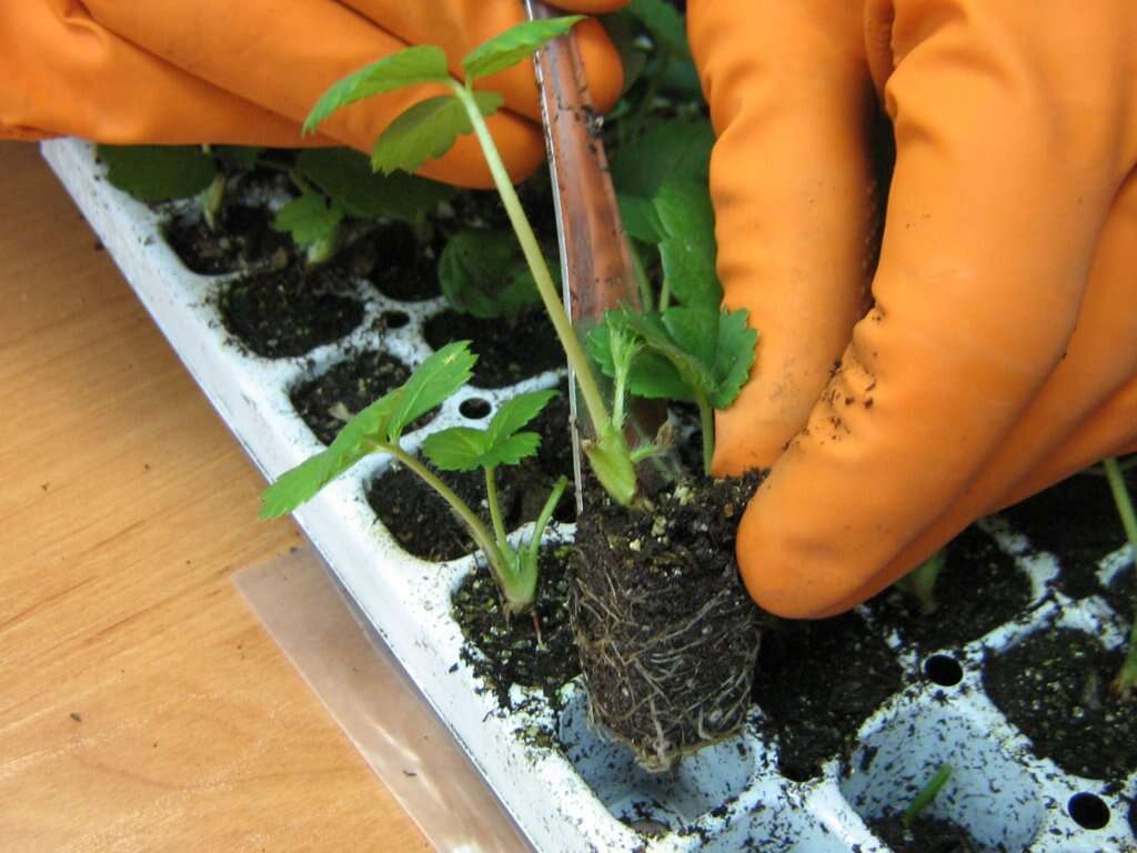 Пикируют клубнику в стадии развития у нее 3-4 настоящих (зубчатых) листьев, но касается это только сеянцев, растущих в общей емкости. Их перед пикировкой хорошо поливают, извлекают из грунта за семядольные листья (ни в коем случае не за стебель!), прищипывают у них центральный корень и пересаживают сеянцы в отдельные стаканчики, где они будут расти до высадки в открытый грунт