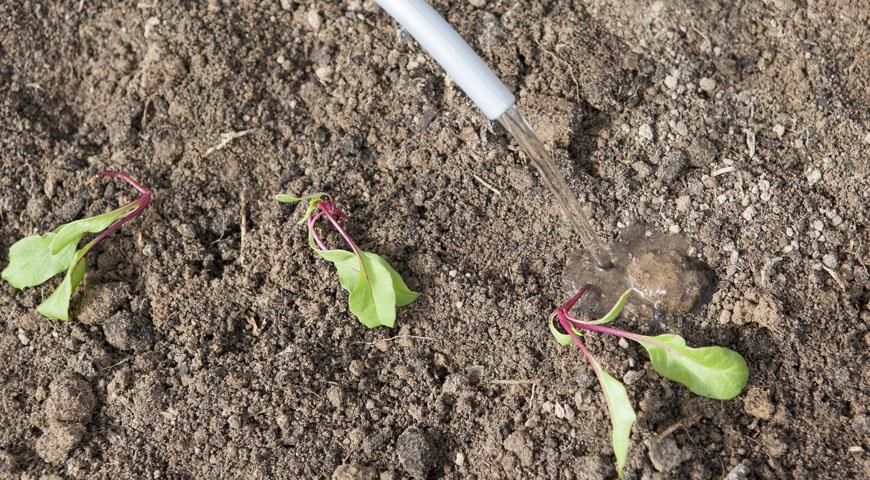 В жаркую погоду в первые несколько дней поливайте рассаду свеклы ежедневно до полного укоренения. После укоренения поливайте редко, но обильно в зависимости от погоды. Постоянное сильное переувлажнение приводит к заболеванию свеклы паршой и потерей урожая при хранении.