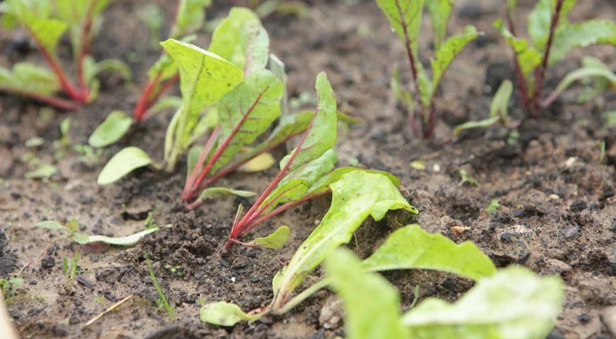 Семена свеклы представляют собой соплодия или сростки плодов, соединенные по 3—5 штук в плотные клубочки. Каждое соплодие может дать 2—4 полноценных ростка, что приводит к загущенности всходов. Если вовремя не удалить лишние побеги, то корнеплоды вырастут мелкими, деформированными и безвкусными. Оставшиеся после прореживания саженцы можно рассадить на свободные места.