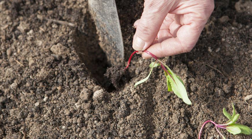Если при посадке будет сильно заглублена верхушка свеклы, то могут погибнуть всходы. Она должна быть на уровне почвы.