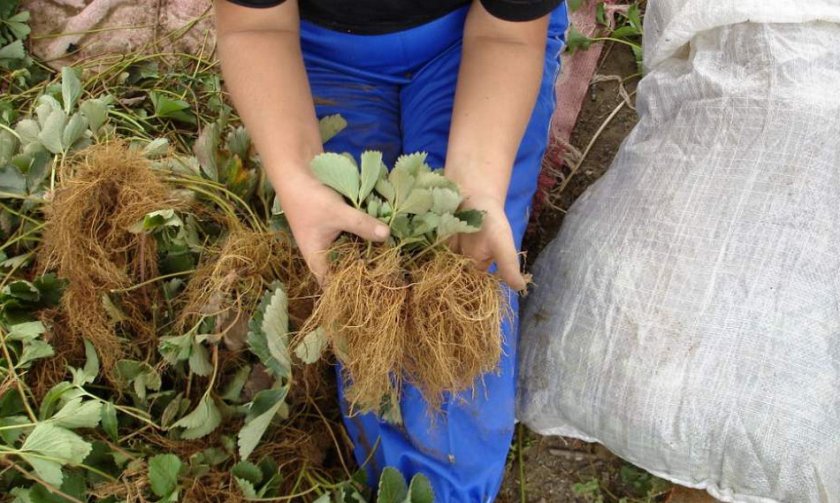 Рассаду с открытым корневищем сложно сохранить на зиму до посадки. Единственный подходящий вариант — хранение по системе Фриго. Метод заключается в помещении сеянцев в температурные условия +1. +2°С. Кусты клубники перед помещением на хранение избавляют от лишних листьев. Если для посадки используются саженцы собственного выращивания, их выкапывают в последних декадах ноября.