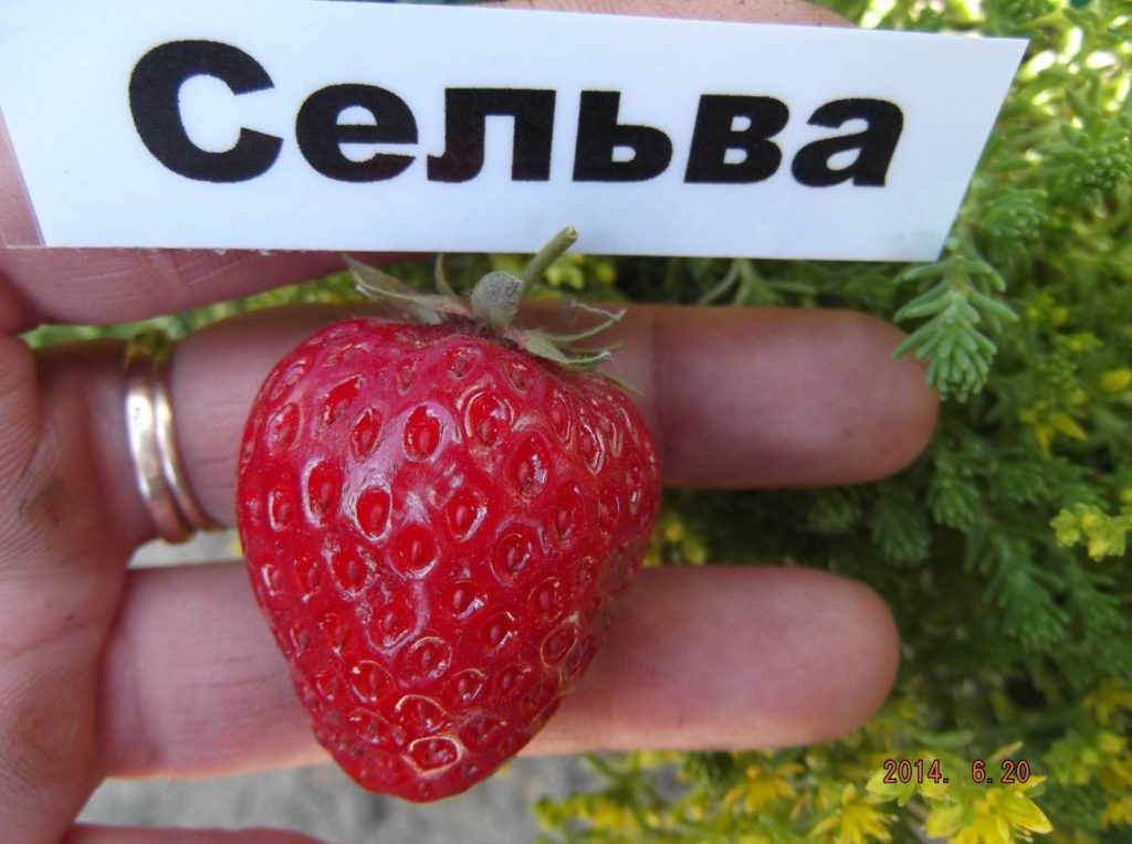 Сельва относится к крупноплодным сортам. Ягоды блестящие, темно-красные, округло-конической формы с плотной, сочной мякотью. Их вес колеблется от 30 до 60гр. Вкус довольно насыщенный, кисло-сладкий, отмечается схожесть со вкусом лесной земляникой. Плоды своей красотой опережают элитные виды, но по вкусовым качествам они не дотягивают.