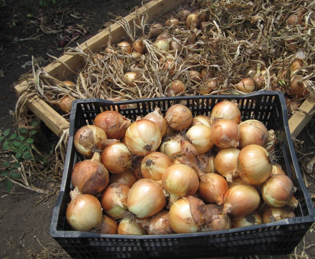 Сбор лука в Подмосковье и соседних регионах начинают еще в конце июля. Ранние сорта выкапывают первыми, но не убирают на хранение. Поздние требуют более тщательной подготовки к складированию, поэтому их высушивают, очищают