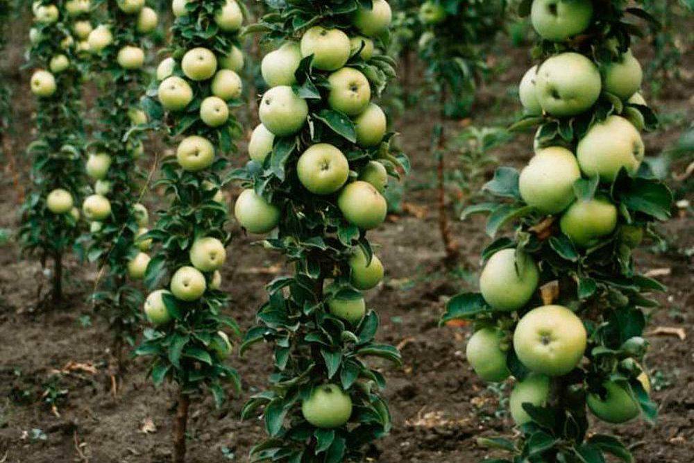 Колоновидные деревья относятся к полу карликовым сортам. Яблоки поспевают рано, по причине раннеспелости вида. Ствол напоминает по форме колонну, щедро усыпан плодоносящими ветвями в качестве кольчаток, копьец.