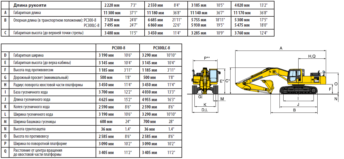 Технические характеристики: Komatsu PC300-8МО гусеничный экскаватор