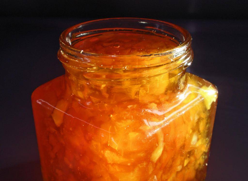 Более того, готовится варенье очень просто: все фрукты разрезать на части (апельсины вместе с корочкой) и пропустить через мясорубку, превращая в янтарного цвета пюре. Смешать его с сахаром и поставить на огонь. Варить, помешивая всего сорок минут, а затем разложить в сухие баночки и плотно закупорить. Вот и все: чудо-джем готов!