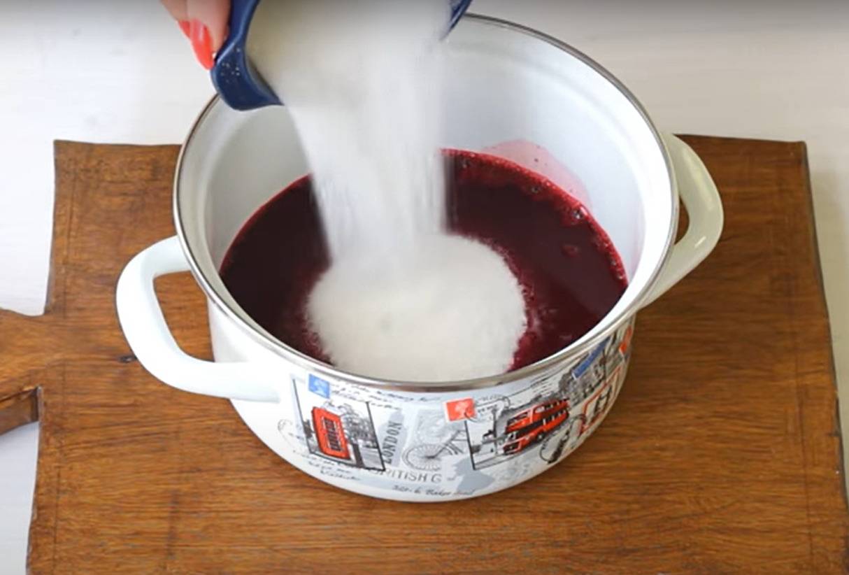 - Всыпаем сахар и доводим до кипения, а после того, как сахар разойдется, выливаем его обратно по банкам.