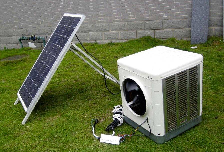 Фирма Mountain Concepts выпустила Diablo Solar – небольшой кондиционер испарительного типа, работающий от солнечных батарей. Он отличается не только высокой производительностью, но и своей экономичностью. Кондиционер работает от гелиевых панелей, которые обеспечивают напряжение питания 24 вольт постоянного тока. Наличие аккумулятора позволяет использовать устройство и в темное время суток. Несмотря на свои небольшие размеры и мощность, этот кондиционер обеспечивает создание комфортного микроклимата в помещениях площадью до 30 квадратных метров. Его максимальная производительность достигает 3000 кубометров воздуха в час.