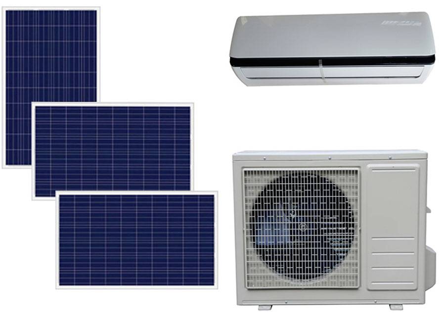 Компания Jiangsu Sunchi New Energy Co., Ltd. выпускает мощный гибридный кондиционер, работающий на солнечных батареях. Этот кондиционер компрессионного типа является универсальным прибором и может применяться для создания комфортного микроклимата в квартирах, офисах, производственных помещениях. Он может работать как на охлаждение, так и на подогрев воздуха. Тепловая мощность на охлаждение составляет 11000 BTU/h, что в переводе на привычные для нас единицы измерения равно примерно мощности в 3.2 киловатт, в то время, как тепловая мощность на обогрев составляет 12000 BTU/h или 3.5 киловатт. Этой мощности хватает для того, чтобы обслуживать помещение площадью до 75 квадратных метров.