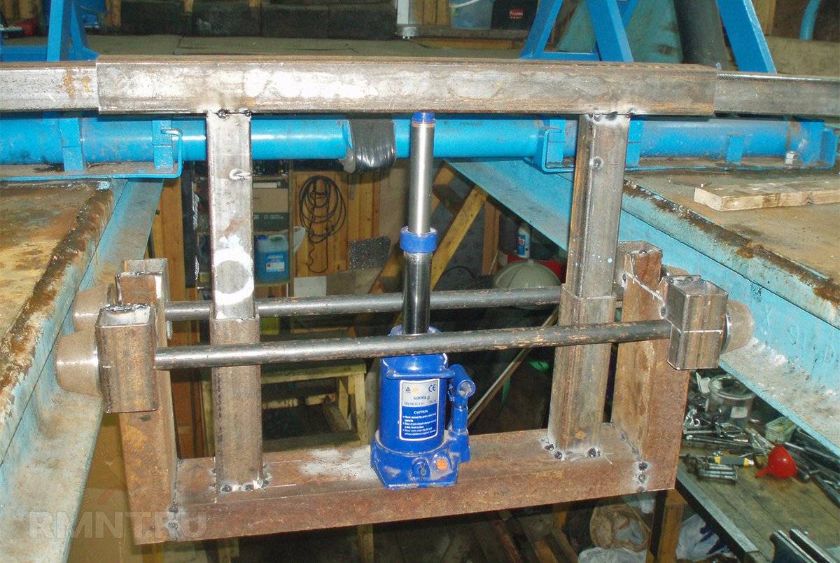 - Кран устанавливают на станину от старого станка или на гусеничный тракт.