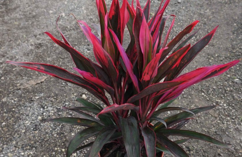 | Кордилина танго | Листья имеют продолговатую форму и яркий окрас красных оттенков. |