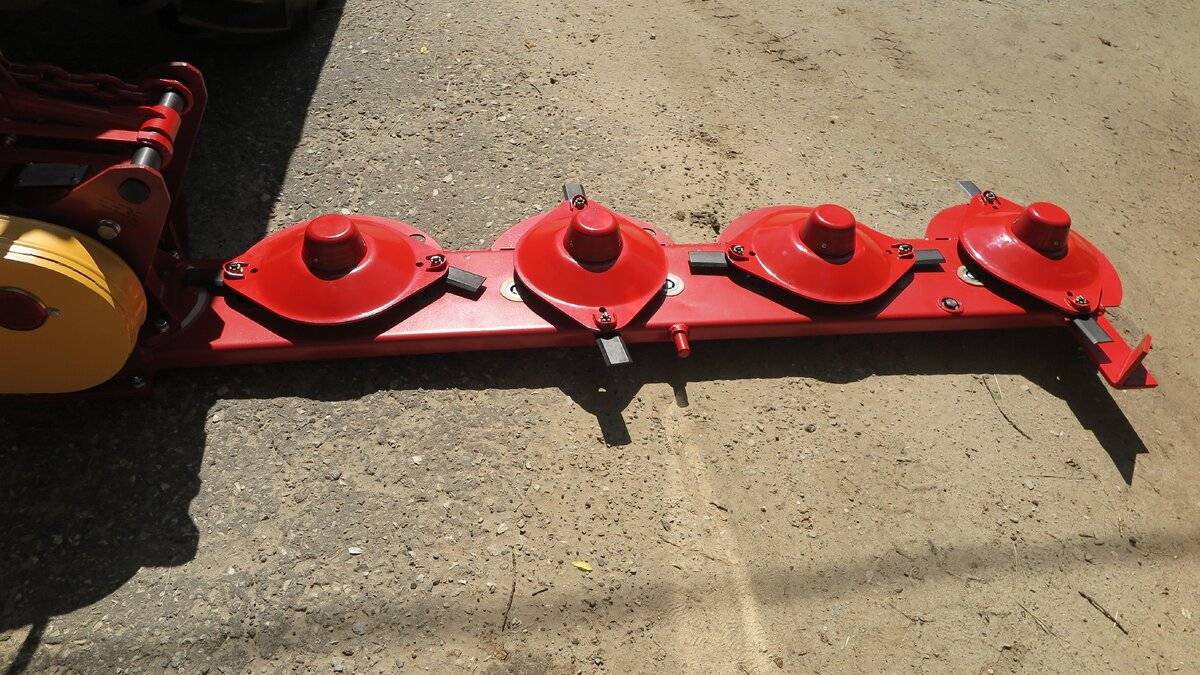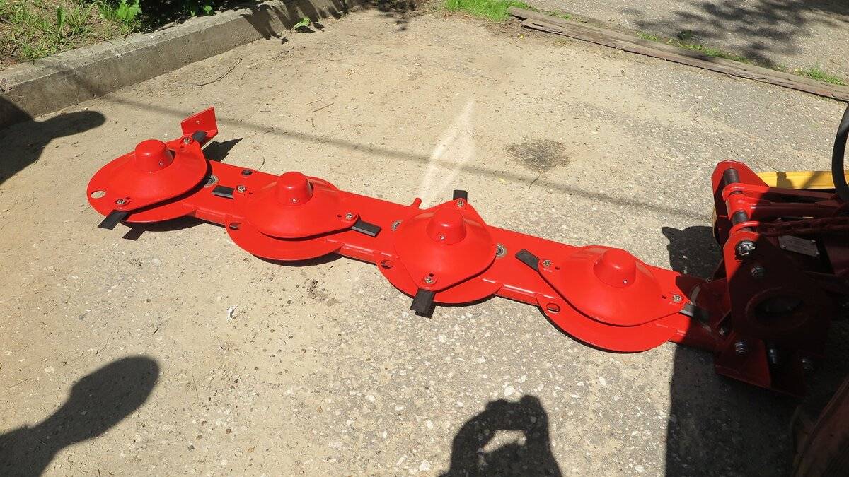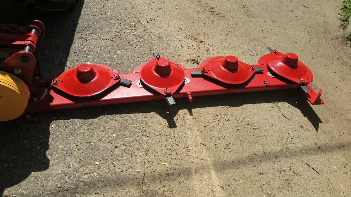 Восемь ножей закреплены на четырех роторах. На средних ножи подлиннее, на крайних – покороче. Они режут траву и отбрасывают ее, а полевой делитель не позволяет стеблям разлетаться во все стороны, укладывая их ровным слоем.