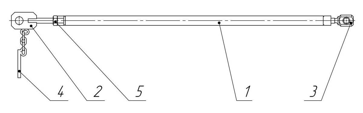 1 – штанга; 2 – фиксатор; 3 – ушко; 4 – палец; 5 – контргайка.