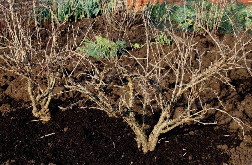 После того как вся вода впиталась, землю вокруг кустика мульчируют, а побеги обрезают, оставляя 5–6 здоровых почек на каждом.