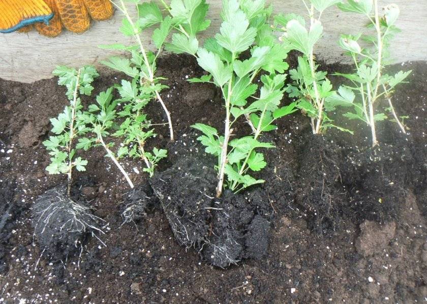 Крыжовник Сенатор высаживают осенью (конец сентября — начало октября). Корневая система культуры довольно мощная. При этом наибольшее количество отростков располагается около центральной части куста (на расстоянии 20–25 см). У молодого крыжовника 80% всех корней находится в слое грунта до 25 см, а у плодоносящего — до 45–65 см. От этого будет зависеть размер посадочной ямы, которую необходимо сделать.