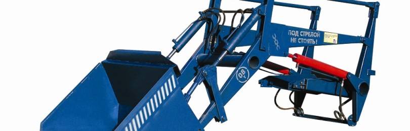 КУН для минитрактора выполнен в формате стрелы, управление которой осуществляется с помощью 4-х гидравлических механизмов – 2 из них участвуют в процессе подъема груза и 2 регулируют угол наклона ковша. В качестве привода используется система шасси, которая также выполняет функцию коннектора для агрегатирования КУНа к основной машине. Панель управления параметрами работы погрузчика находится в кабине машиниста и отличается простотой.
