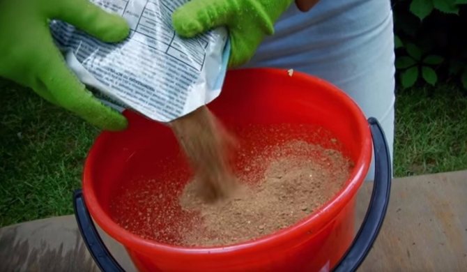 Для приготовления иного лекарства смешивают 90 г гашеной извести и 350 г глины. Сухую смесь добавляют в 10 литров воды. Полученное средство используют сразу же после приготовления для опрыскивания.