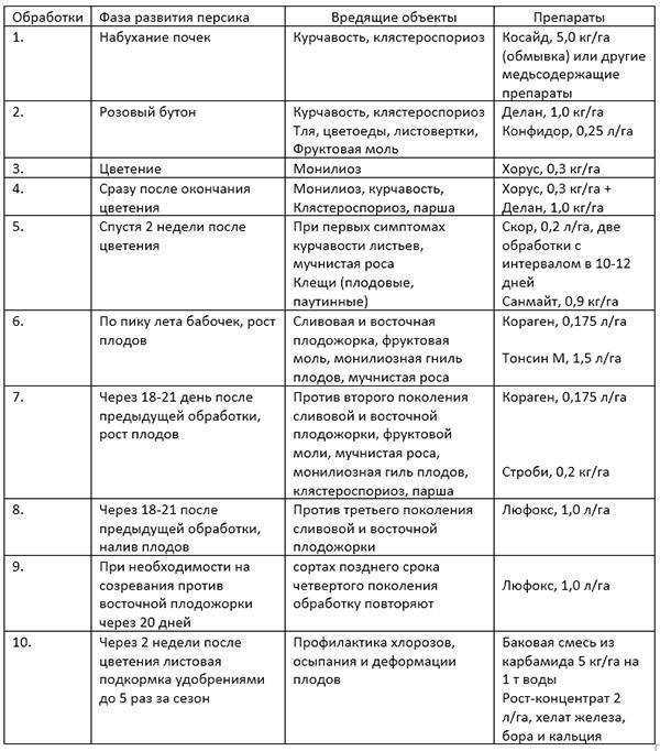 Сроки и схема обработки персиковых деревьев