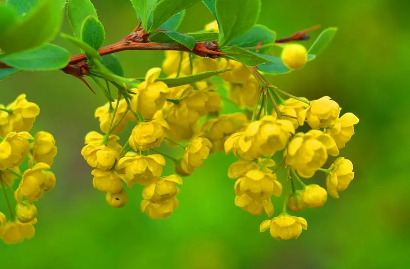 Основный вид рода Барбарисовых – Berberis vulgarus – вырастает в высоту до 3 м. Цветет в течение 2-3 недель, источая нежный аромат. Цветки желтые с блеском собраны в кистевидные соцветия, побеги серо-бурые с шипами длиной до 2 см, плоды ярко-красные. Среди востребованных представителей отряда отмечают следующие формы: