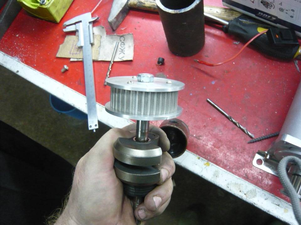 Затем наденьте на приводной отрезок вала звездочку от отечественного мотоцикла;