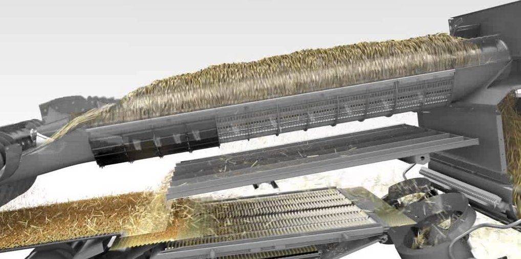 Остаток необработанной массы поступает на клавиши соломотряса, там встряхивается, попадает в копнитель, измельчитель и превращается в полову или пересыпается через стрясную доску и вновь подается на обмолот.