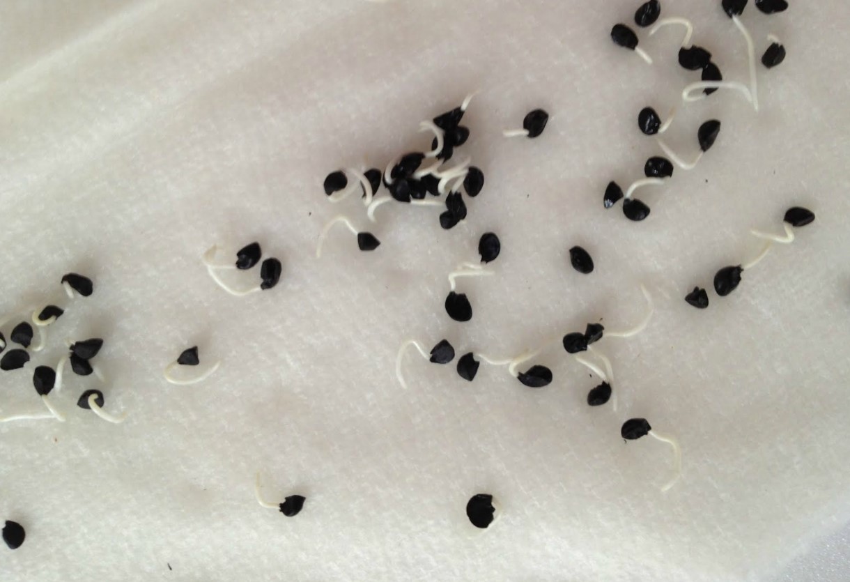 - Проращивание. Процедура не отличается от обычного проращивания для других культур. Одна поправка – семечки надо выкладывать либо на салфетку, либо на ткань, но только не на марлю, так как нежные ростки, которые даст чернушка, могут сломаться, запутавшись в нитях. Семена лука прорастают в течение 7-10 дней.