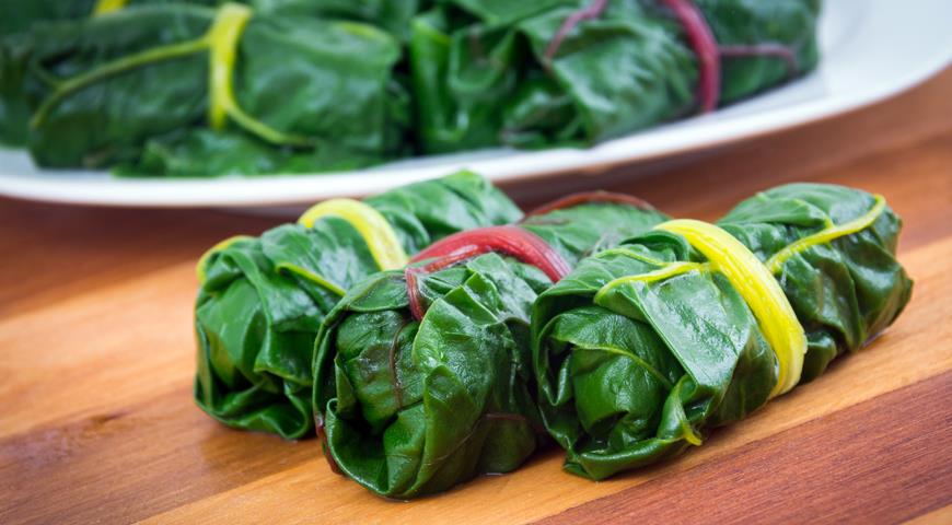 В листья мангольда можно заворачивать готовые смеси из мелко нарезанных овощей, мяса, рыбы.