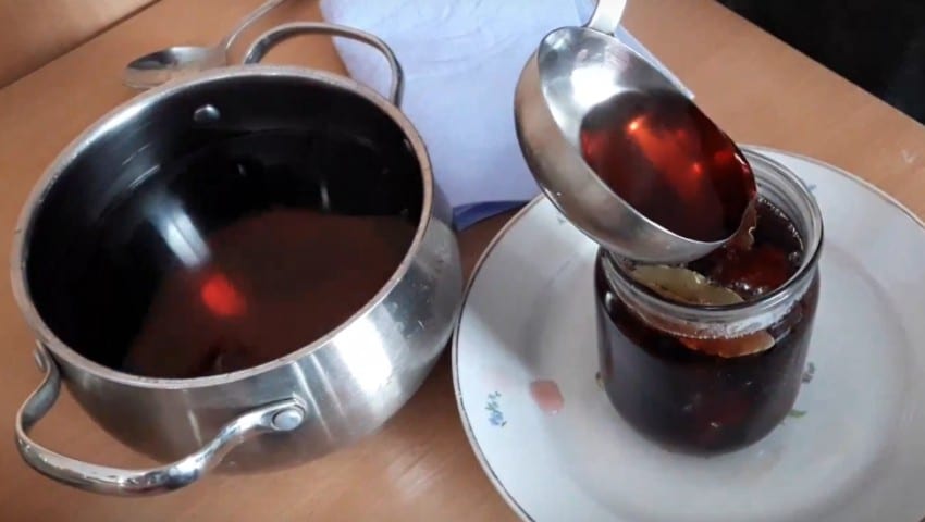 - Маринад в очередной раз подвергают кипячению и заливают в стеклянные емкости.