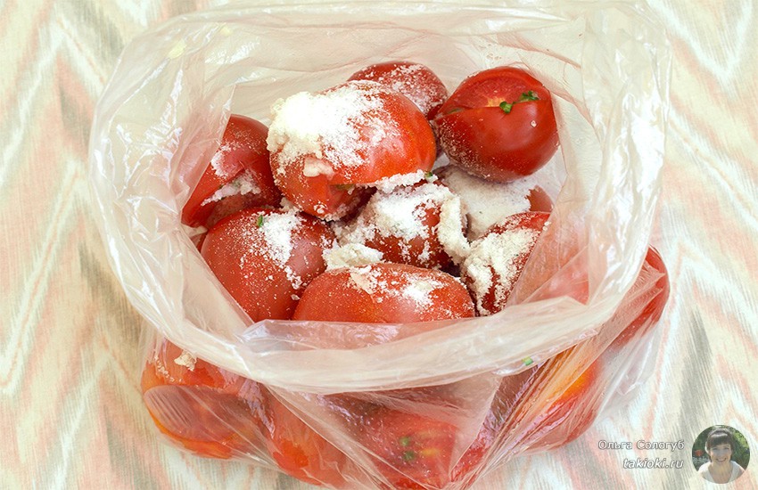 Мы совсем забыли разобрать приготовление малосольных помидор. В состав которых входит наименьшее количество соли, но гораздо больше сахара. В этом случае соленья получаются со слегка сладковатым вкусом. Поэтому если Вы не любитель подобного вида консервации, то можете уменьшить количество сахара.