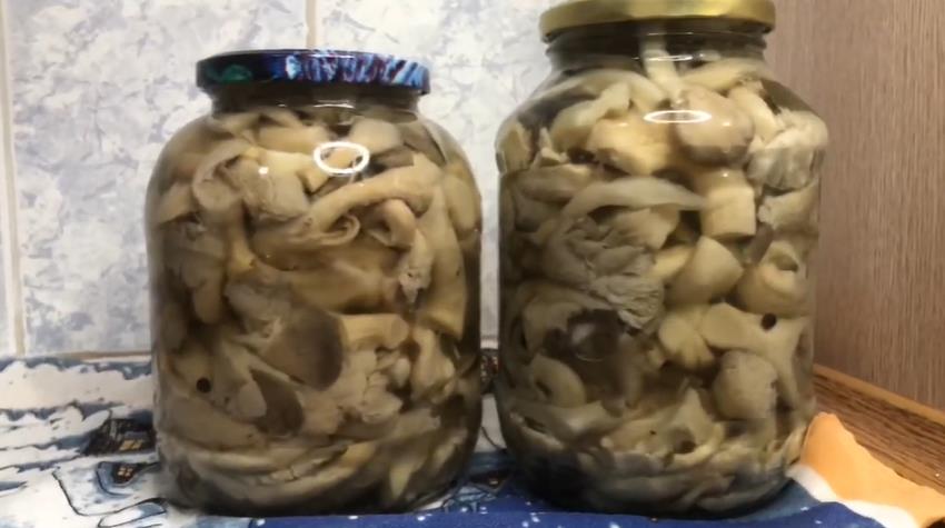- Отправить в маринад вешенки, проварить 20-25 минут, горячими закатать в стерилизованных банках и прогреть под одеялом.